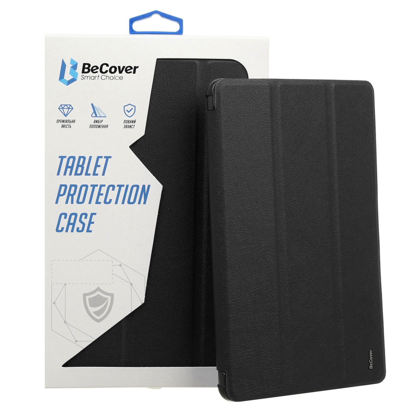 Чохол-книжка Tri Fold Hard BeCover, виготовлений із якісної штучної шкіри, задня кришка із напівпрозорого пластику.