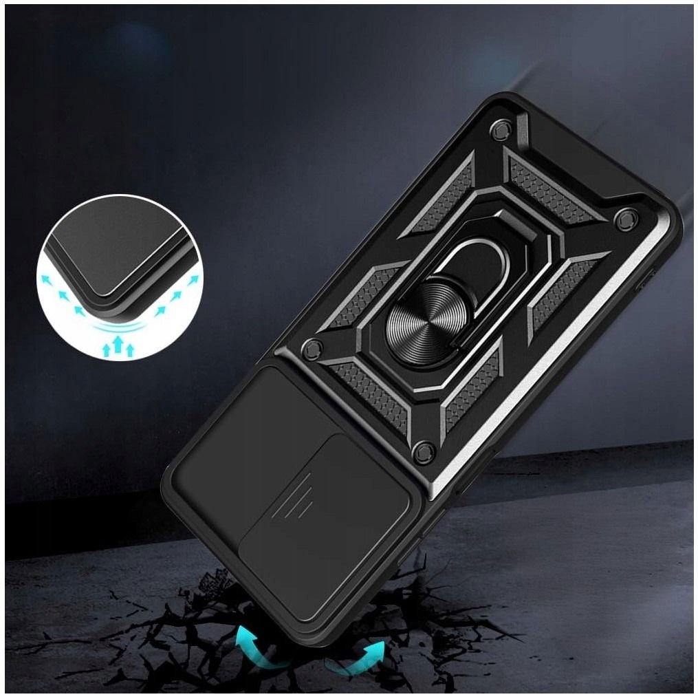 Гнучка силіконова панель має жорсткий металізований корпус та кільце-підставку для пальця. Чохол здатний витримати навіть сильні удари та подряпини.