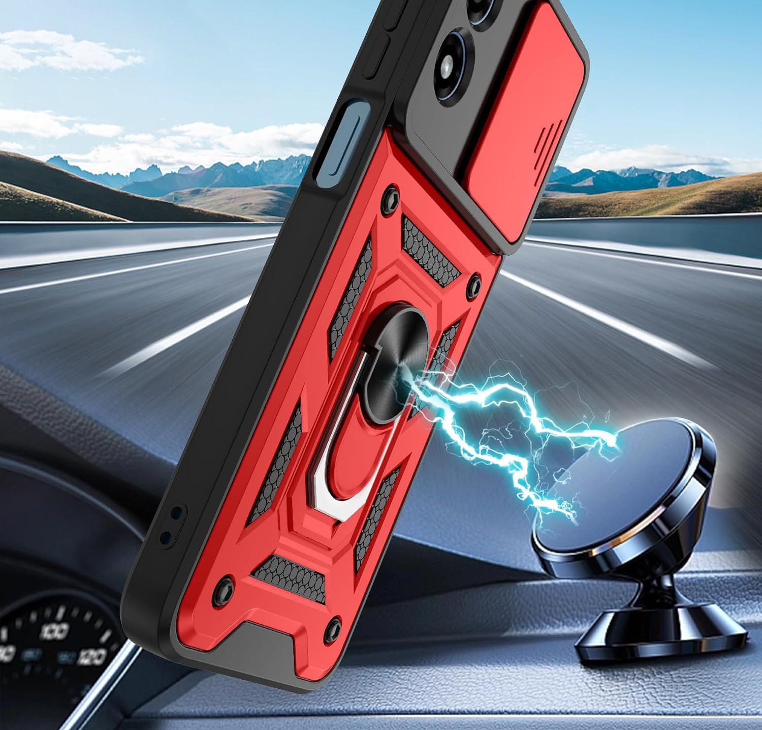 Гнучка силіконова панель має жорсткий металізований корпус та кільце-підставку для пальця. Чохол здатний витримати навіть сильні удари та подряпини.
