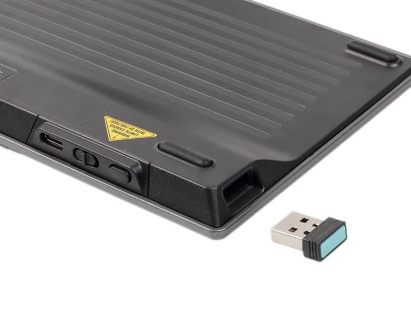 Два в одному. Клавіатура підтримує два режими підключення - за бездротовою технологією Bluetooth і за допомогою USB-ресивера 2.4 ГГц, і працює на відстані до 10 м, забезпечуючи швидку передачу даних без затримок