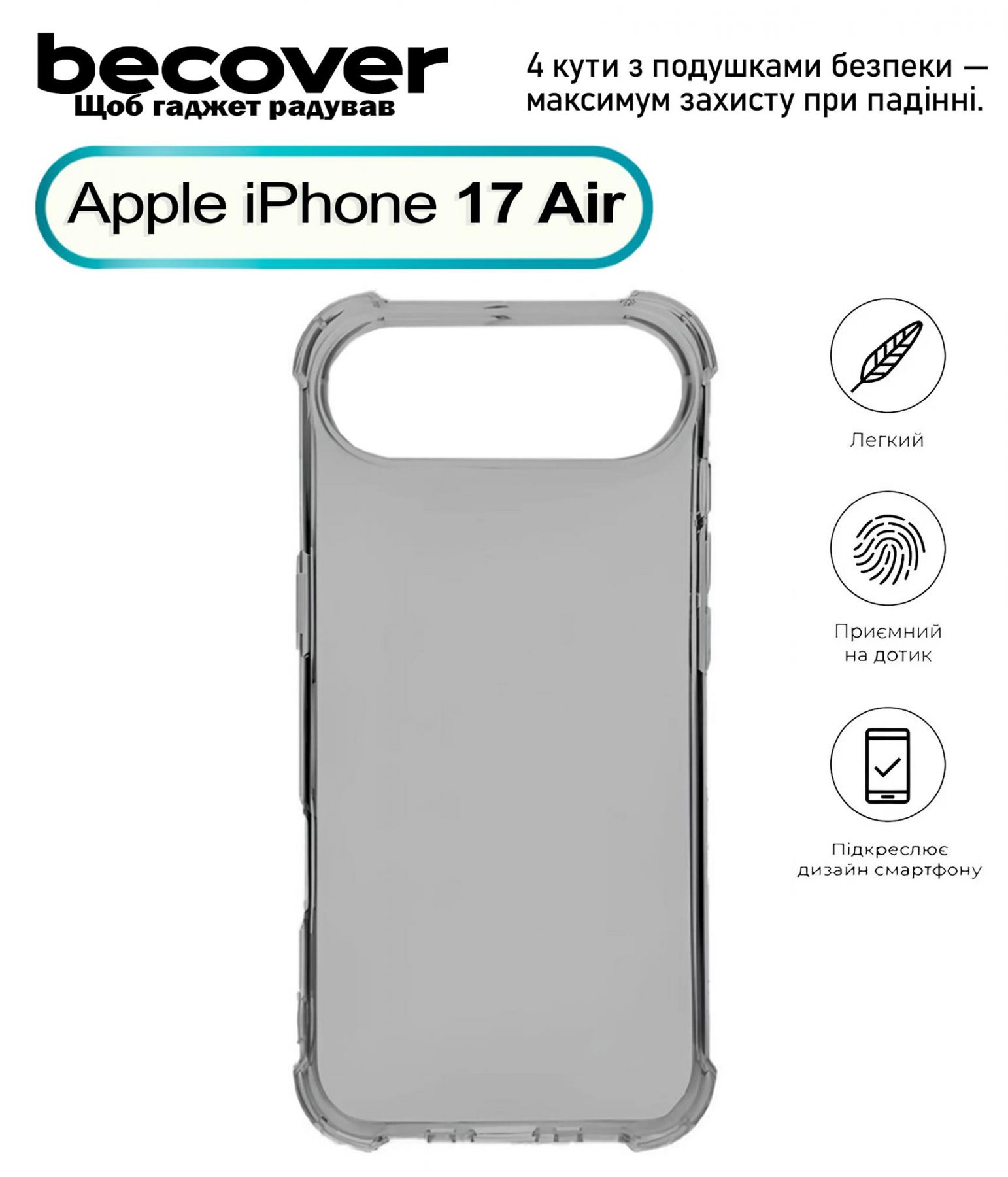 Чохол-накладка BeCover Anti-Shock для Apple iPhone 17 Air Grey (713796)