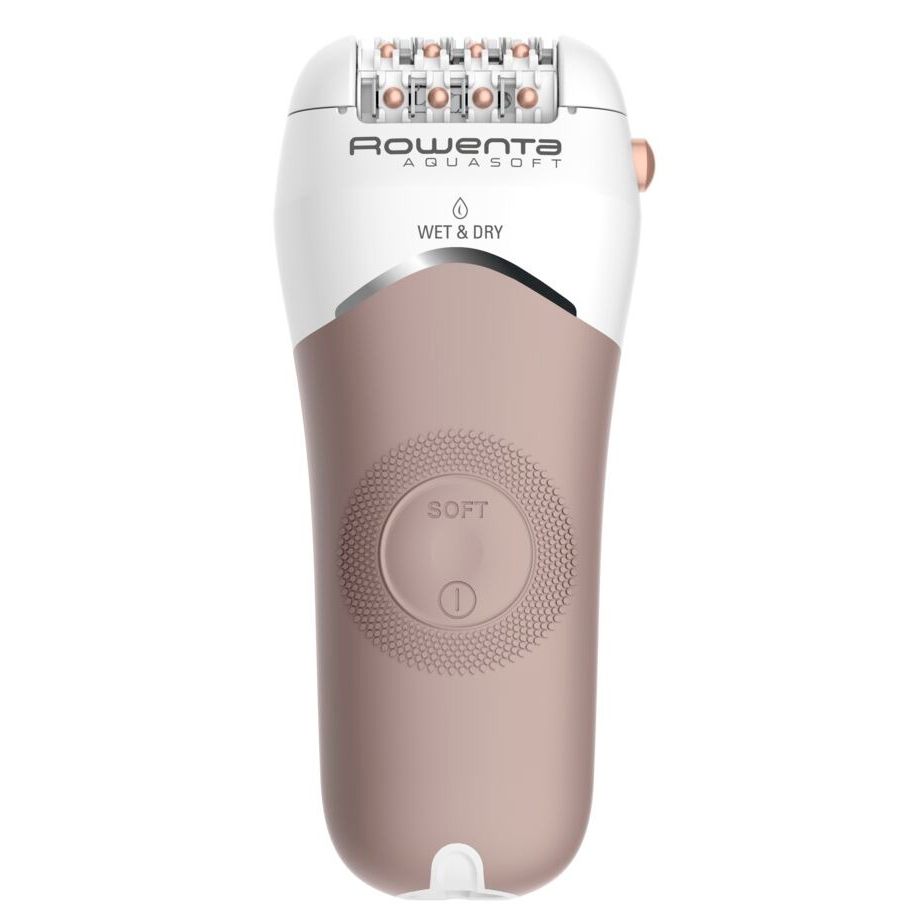 Видаляйте волосся дбайливо, швидко і без побічних ефектів з новим епілятором Rowenta Aquasoft. Завдяки запатентованій технології проти роздратування Anti-Irritation і спеціальному м"якому покриттю насадки епілятор ефективно видаляє волоски, не дратуючи шкіру. Корпус епілятора на 100% водонепроникний, тому пристрій можна використовувати як на сухій шкірі, так і під час прийняття душу або ванни, адже вода чинить додаткову заспокійливу дію на шкіру під час епіляції.