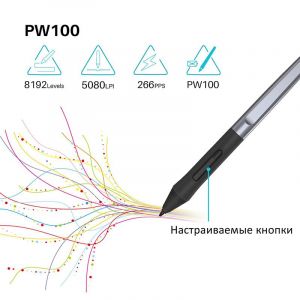 Стилус без батареї PW100 звільняє вас від проблем з частою зарядкою; 8192 рівня чутливості до тиску пера і роздільна здатність пера 5080 LPI забезпечують більш точні і плавні лінії. Швидкість відгуку 266 PPS забезпечує швидку реакцію на кожен рух стилуса, майже без затримок. Завдяки цим функціям, HS64 володіє чудовими характеристиками пера, що робить процес малювання більш приємним.