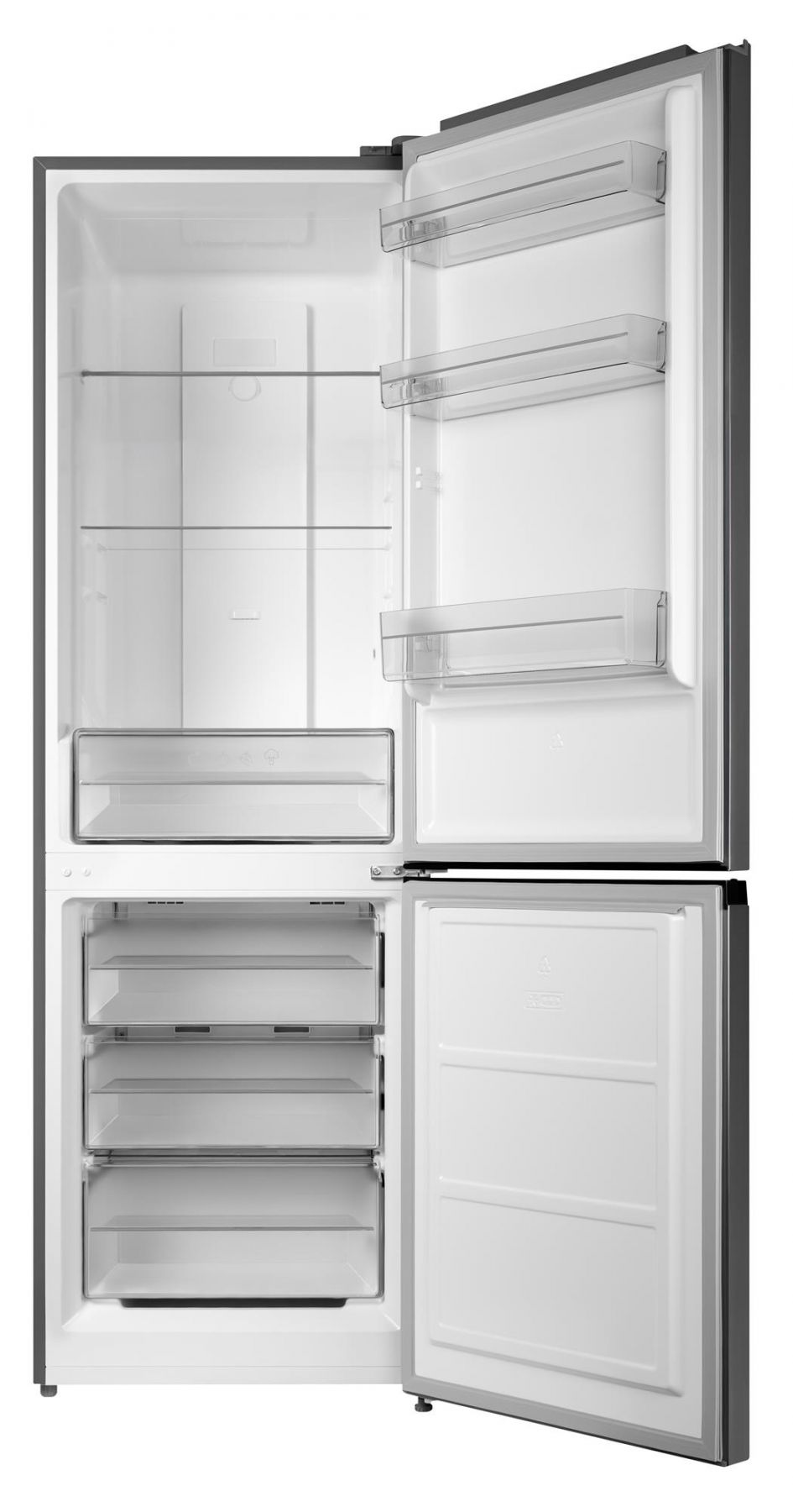 Модель NFN-185X виконана у металевому кольорі, що гармоную з сучасними кухонними інтер’єрами різних тонів. Холодильник висотою 185.8 см має два відділення: