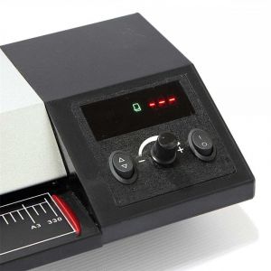 Agent LM-A3 250 MD оснащений індикатором готовності та має режим регулювання температури для плівки. Ламінатор має металеву основу та виконаний у чорно-сірому кольорі.