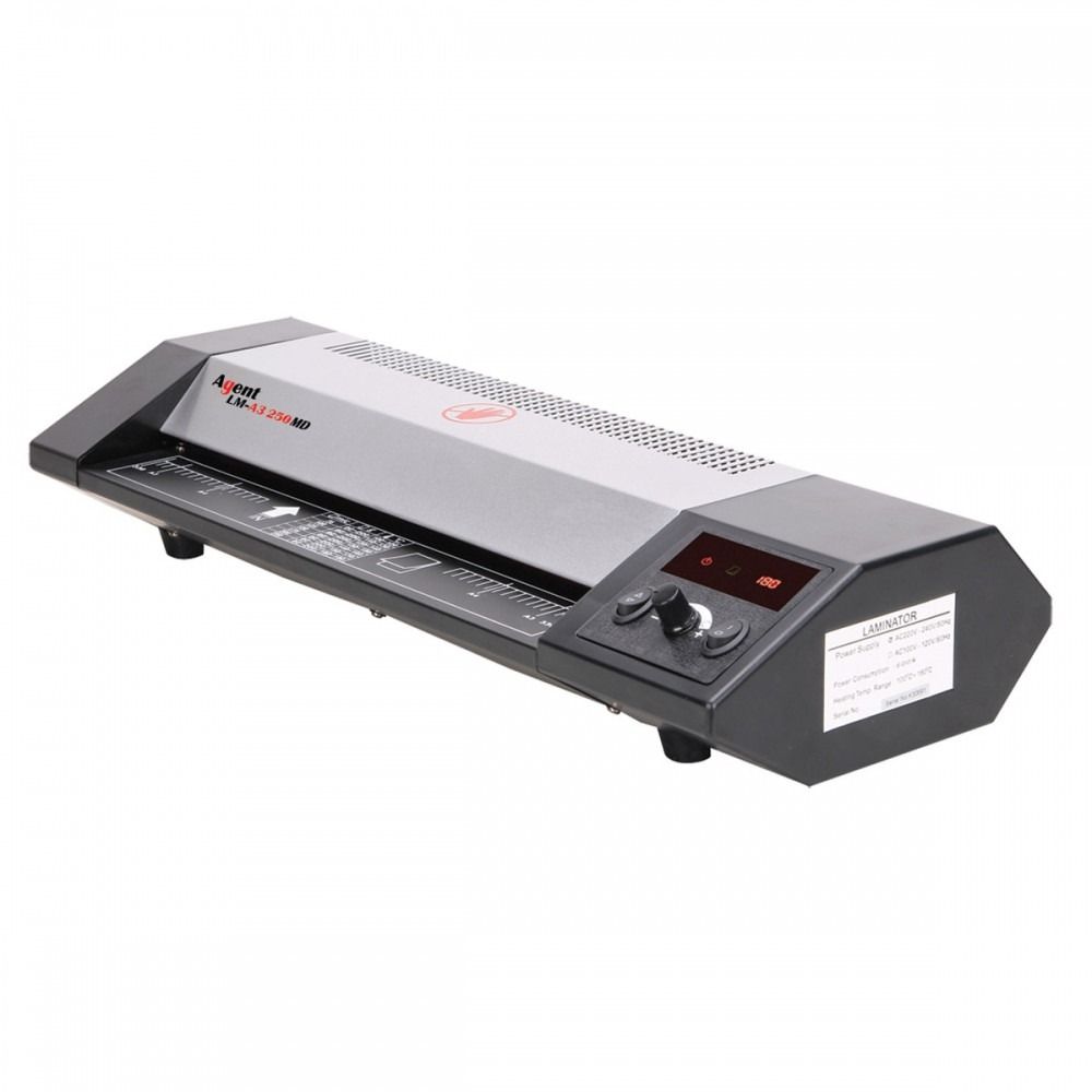 Agent LM-A3 250 MD - компактний та зручний офісний ламінатор, який призначений для ламінування невеликого обсягу документів. Принцип роботу пристрою полягає у тому, що між чотирма рухомими валами пропускається документ та пластикова плівка, яка його покриває. Ламінування документів захищає документ від механічних пошкоджень, впливу води, а також вицвітання. Ламінатор підтримує ламінування документів у форматі А3.