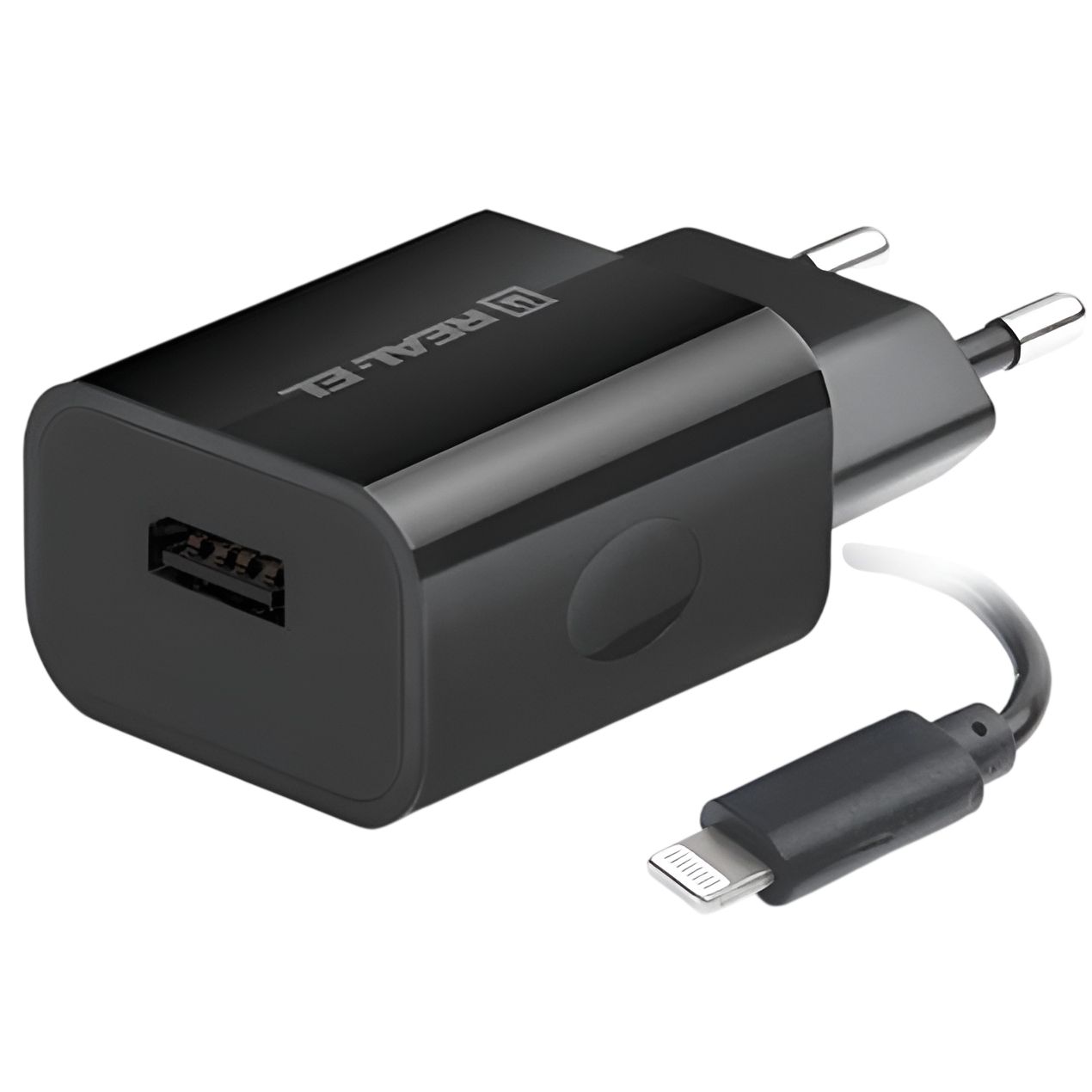 Мережевий зарядний пристрій REAL-EL CH-217 (2USB, 2.1A) Black + кабель Lightning