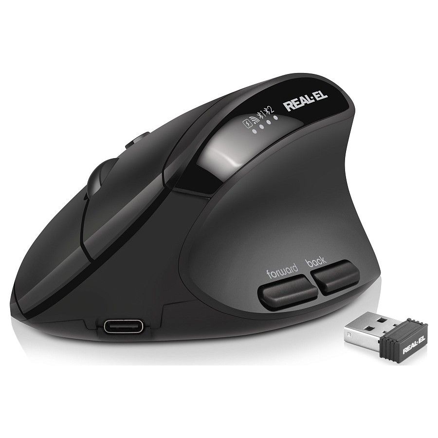 REAL-EL RM-490W — сучасна безпровідна анатомічна миша, що поєднує комфорт, тишу та універсальність у щоденній роботі.