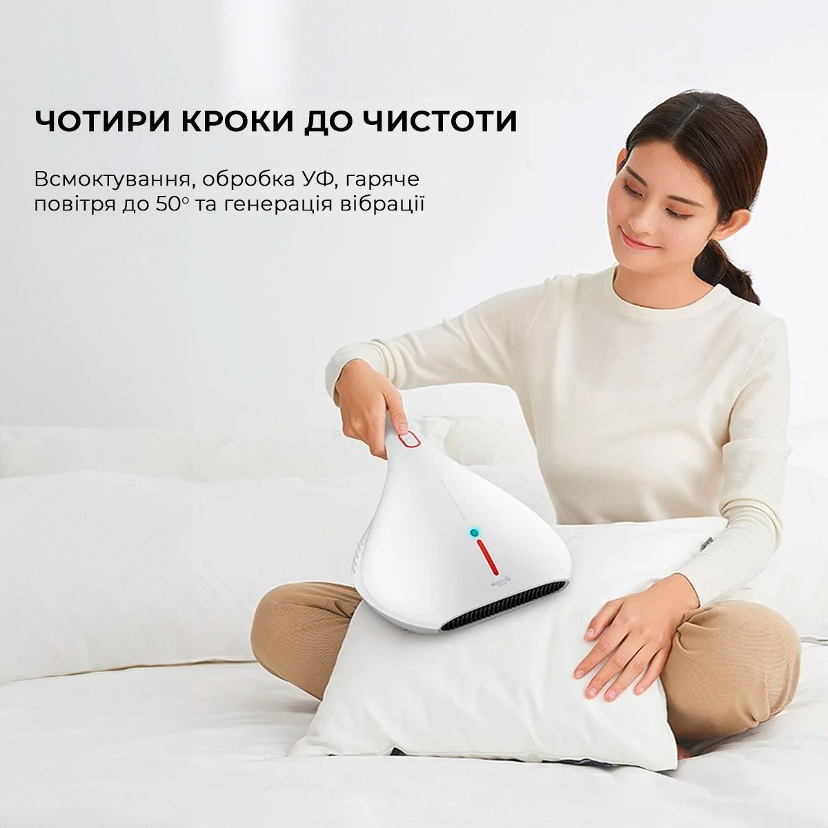 Видаляє до 99,9% кліщів, бактерій, вірусів та алергенів за допомогою УФ-променів