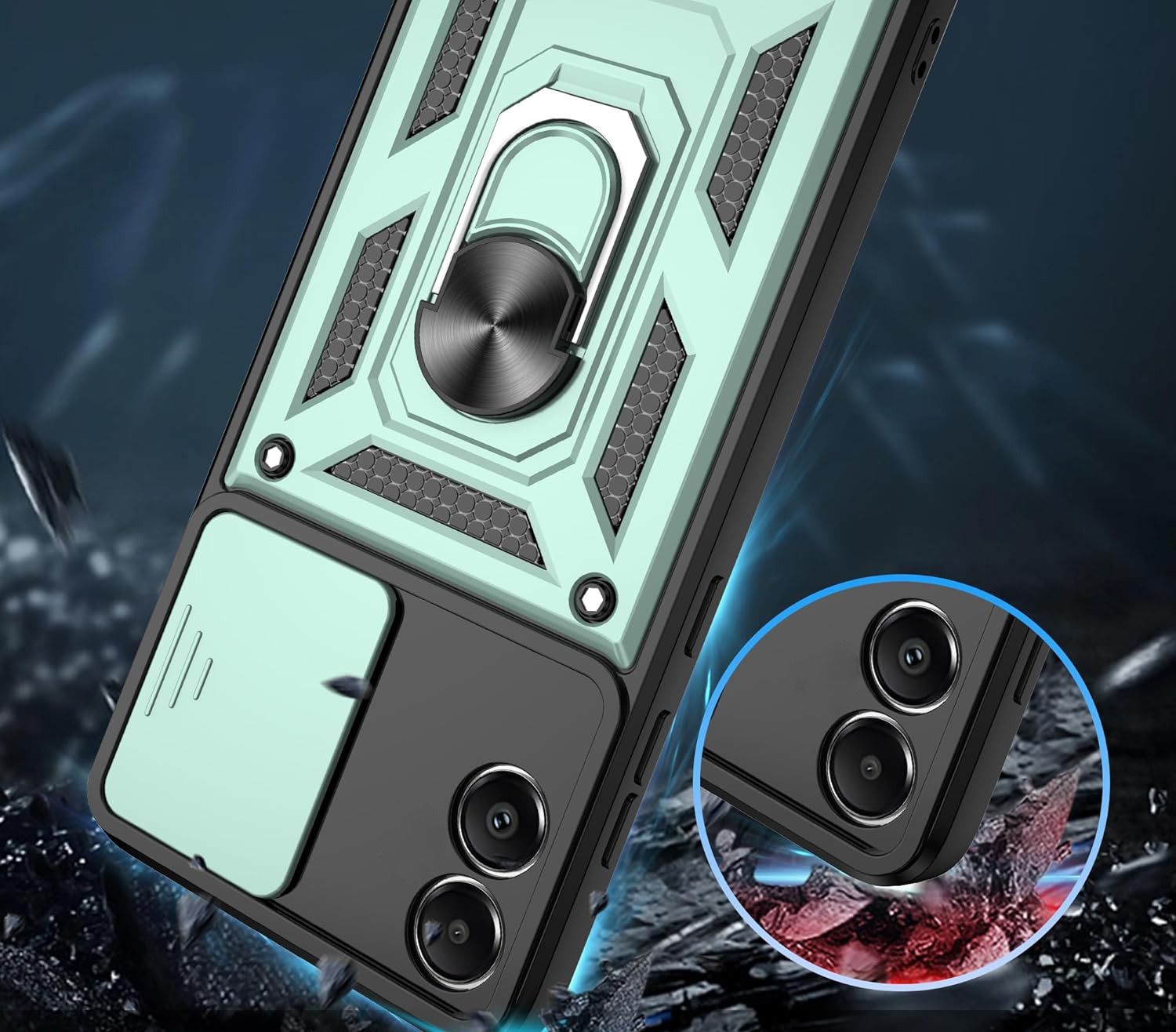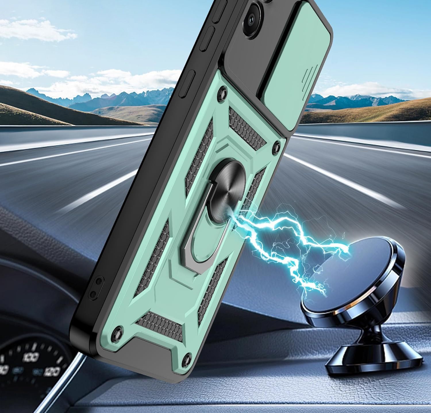 Гнучка силіконова панель має жорсткий металізований корпус та кільце-підставку для пальця. Чохол здатний витримати навіть сильні удари та подряпини.