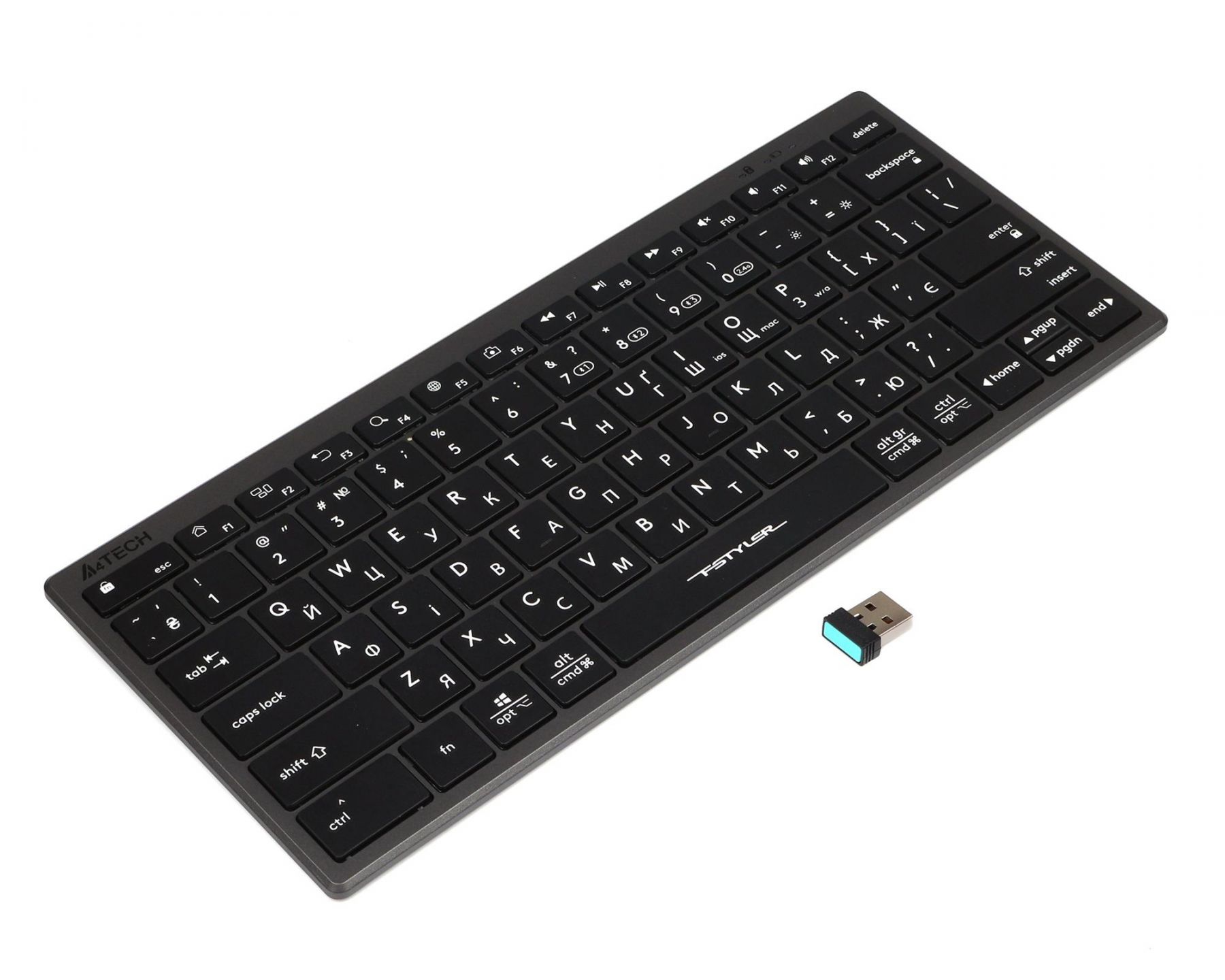 Два в одному. Клавіатура підтримує два режими підключення - за бездротовою технологією Bluetooth і за допомогою USB-ресивера 2.4 ГГц, і працює на відстані до 10 м, забезпечуючи швидку передачу даних без затримок