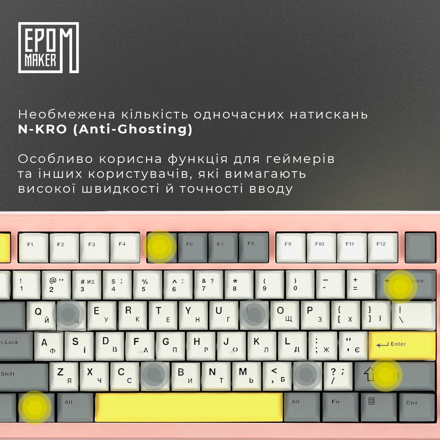 Клавіатура бездротова Epomaker Shadow-S TKL Wisteria Linear Switch Hot-Swap (2.4G/BT/USB) LCD Screen RGB UA Pink (SHS-P-WL)