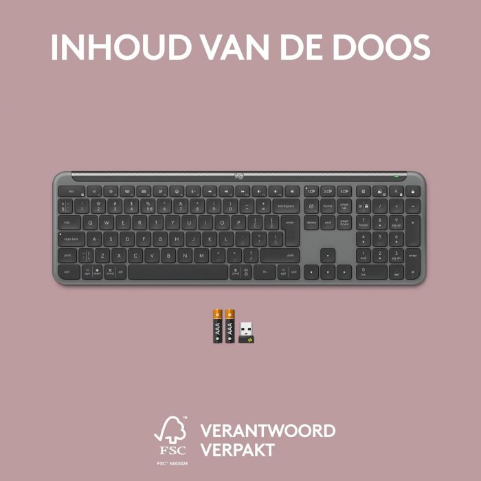 Зробіть свій робочий простір ще кращим з клавіатурою Logitech Signature Slim K950. Ця стримана та надійно побудована клавіатура з повнорозмірним набором тексту у стилі ноутбука виготовлена з використанням вторинно переробленої пластмаси, що робить її не лише зручною, але й екологічною.
