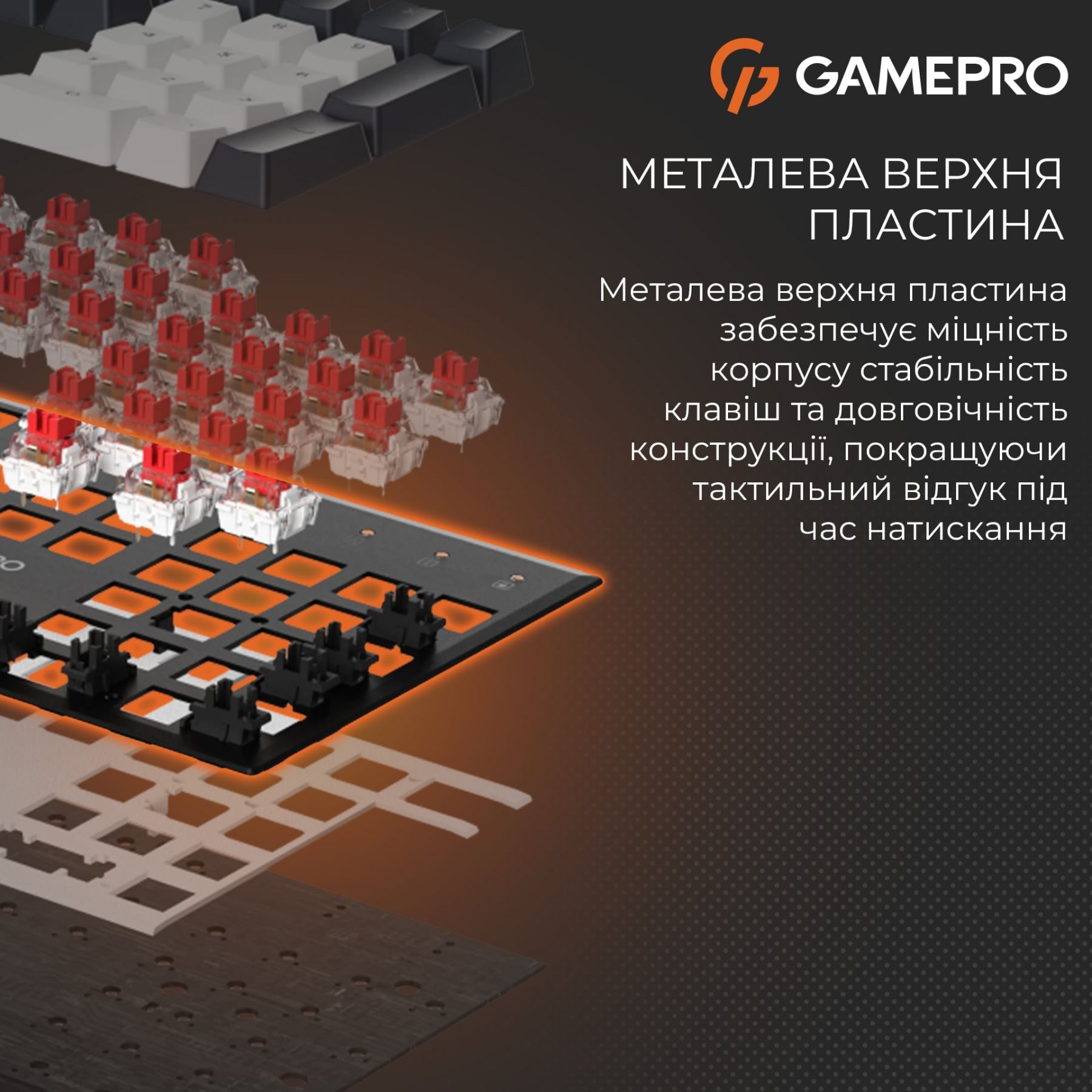 Ігрова механічна клавіатура GamePro Genesis Metallic — це надійне дротове рішення для геймерів і професіоналів, які цінують стабільність, комфорт і високу якість виконання.