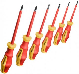 Набір з 6 діелектричних викруток та індикатора напруги 125-250В для роботи під напругою до 1000В. Ергономічні ручки надійно ізольовані та забезпечують комфортну та безпечну роботу.