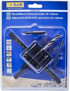 Свердло для дерева S&R розсувне — застосовується для свердління отворів діаметром від 30 до 120 мм у дереві, фанері, ДСП, ДВП, ламінаті, гіпсокартоні тощо.