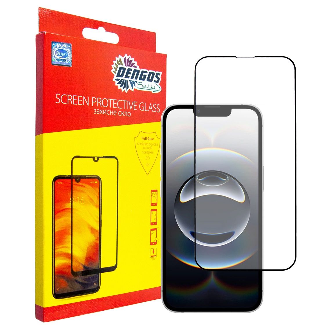 Захисне скло DENGOS Full Glue із індексом міцності 9Н надійно захищає екран пристрою від механічних пошкоджень.