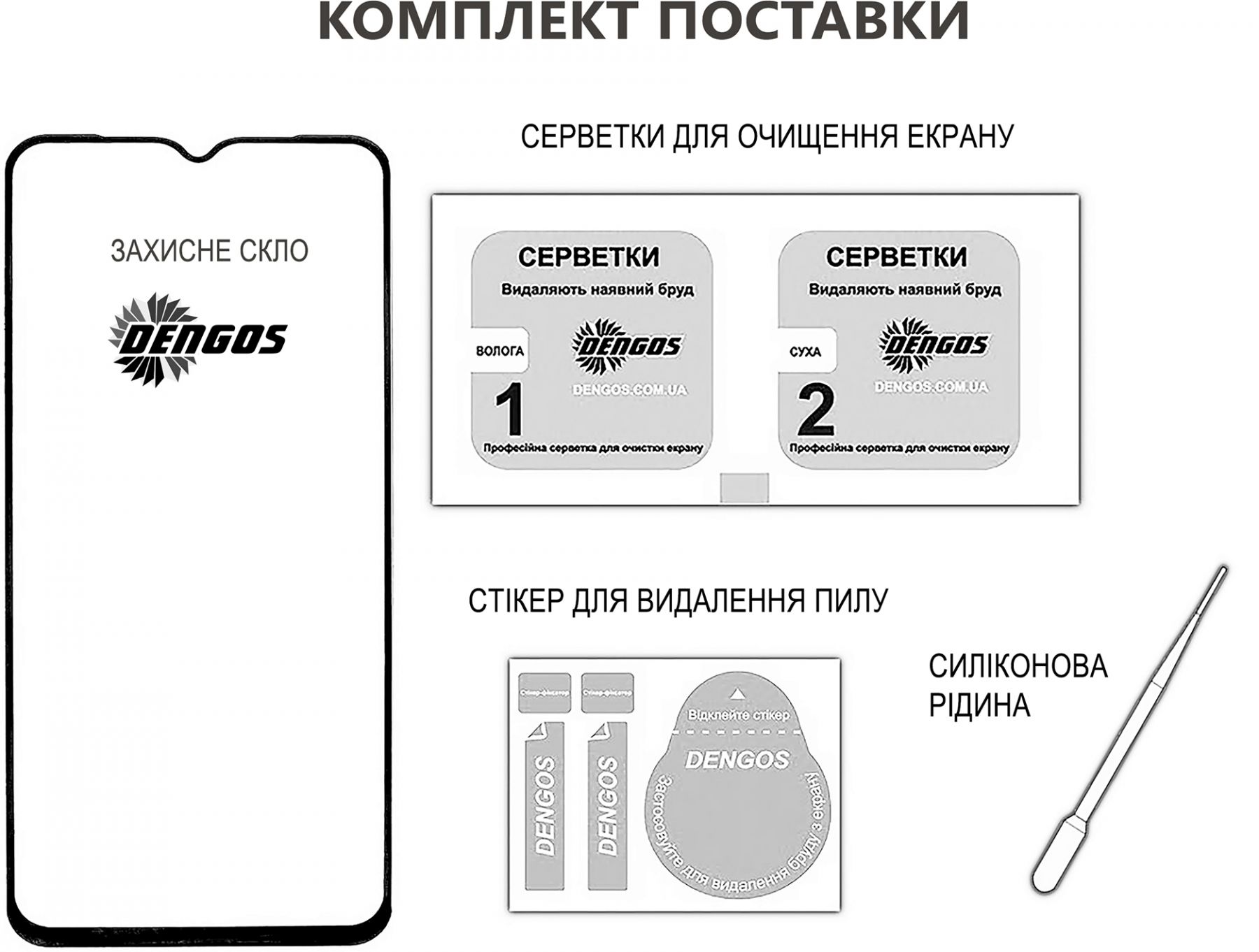 Високоякісне захисне скло DENGOS Full Glue повністю закриває поверхню екрану смартфону, залишаючи доступ до кнопок, динаміків та камери. Клейова силіконова основа нанесена по всій поверхні скла, що гарантує його надійне закріплення. Олеофобне та антиблікове покриття забезпечує відмінну передачу кольорів. Захисне скло DENGOS Full Glue з індексом міцності 9Н надійно захищає екран Вашого пристрою від механічних пошкоджень.